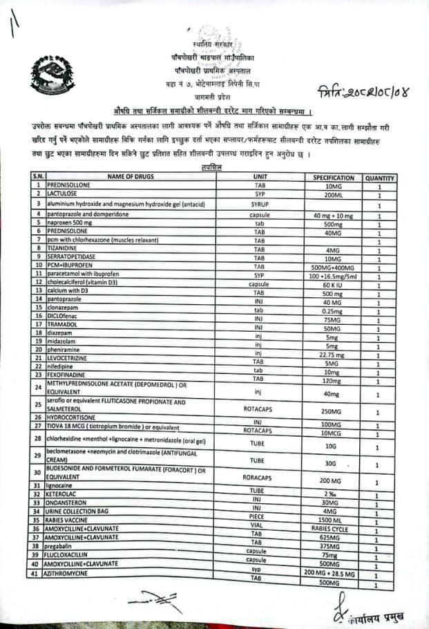 औषधि तथा सर्जिकल सामाग्रीको सिलबन्दी दररेट माग गरिएको सूचना ।