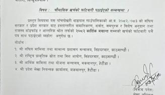 मुख्यमन्त्री तथा मन्त्रिपरिषद्को कार्यालय उद्योग, पर्यटन, वन तथा वातावरण मन्त्रालय भूमि व्यवस्था, कृषि तथा सहकारी मन्त्रालय आन्तरिक मामिला तथा कानुन मन्त्रालय आर्थिक मामिला तथा योजना मन्त्रालय सामाजिक विकास मन्त्रालय नीति तथा योजना आयोग प्रदेश प्रमुखको कार्यालय प्रदेश सभा सचिवालय