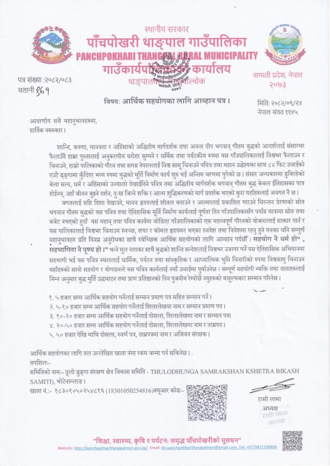 आर्थिक सहयोगको लागिअपिल ।